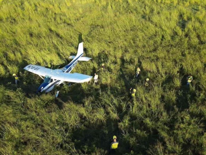 Una avioneta con tres personas a bordo, procedente de Brownsville, Texas, se vio obligada a realizar un aterrizaje de emergencia en una zona despoblada del municipio de Aldama, Tamaulipas.