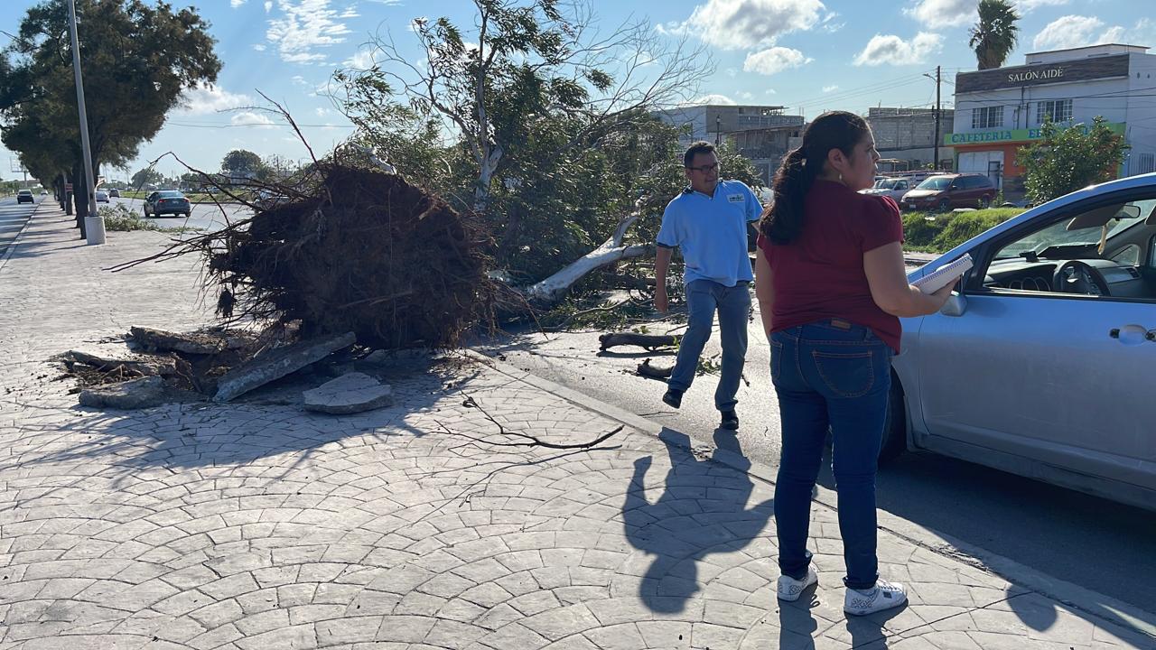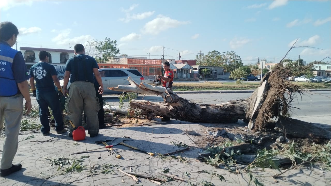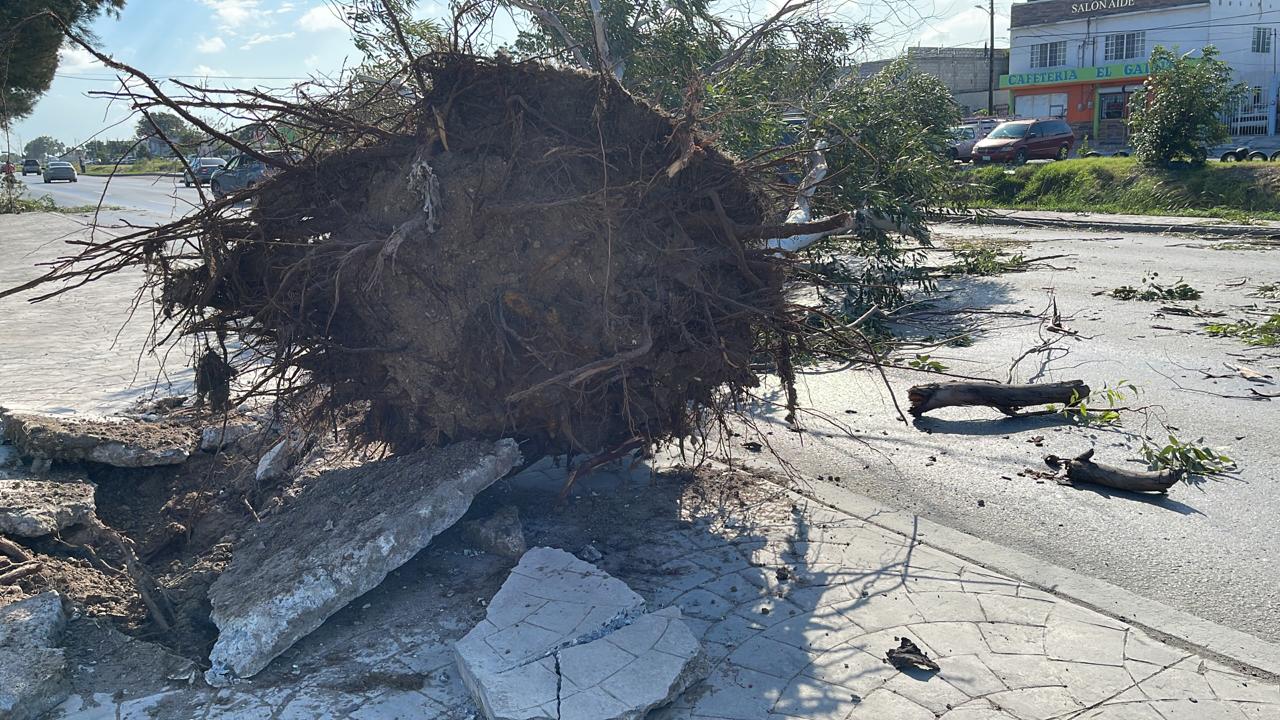 También un vehículo Nissan, Versa, de color gris, se vió afectado cuando algunas ramas cayeron encima del mismo.