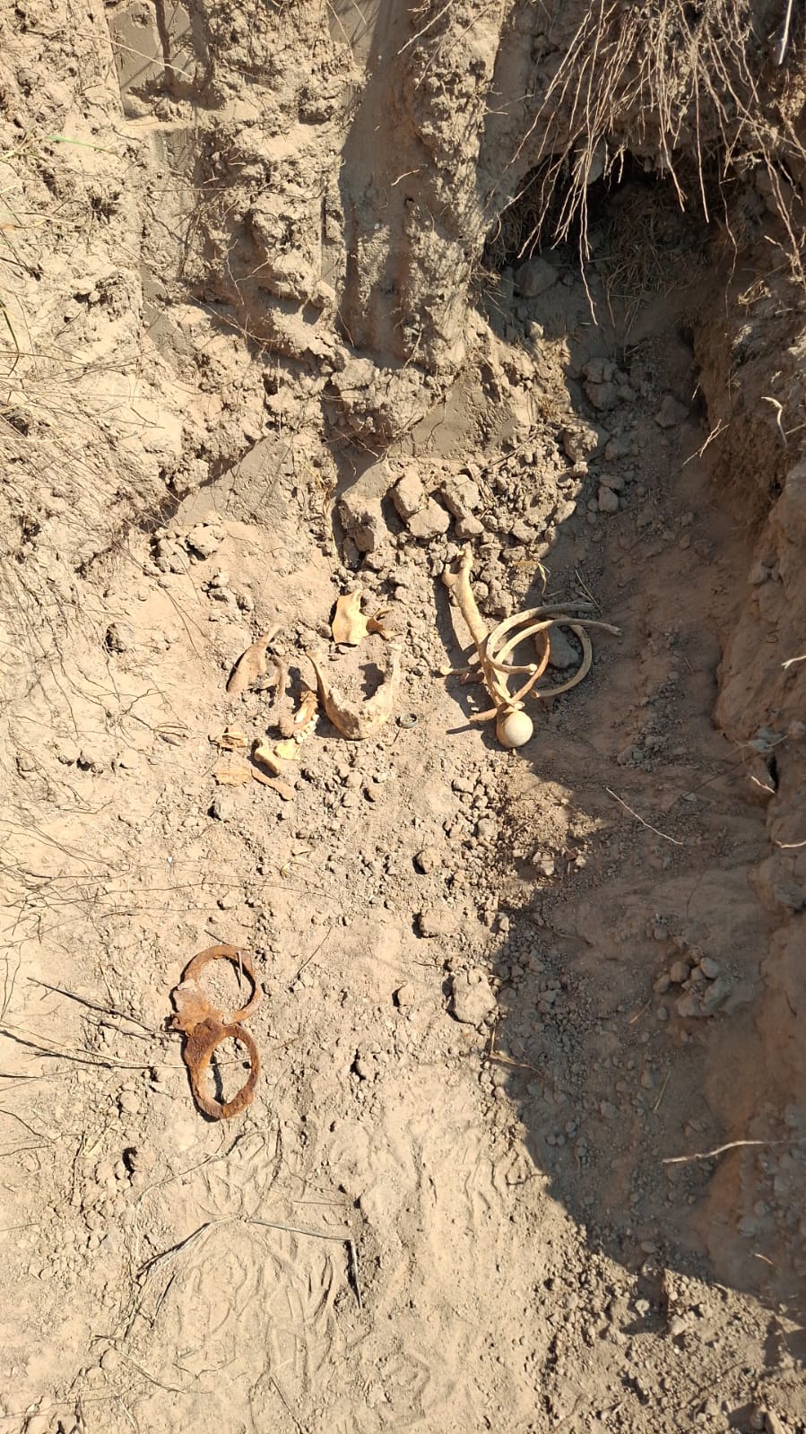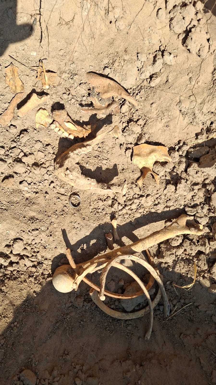 Durante su búsqueda, el grupo encontró restos humanos tanto en la superficie como en el interior de dos fosas, recuperando, entre otros huesos, cuatro cráneos.