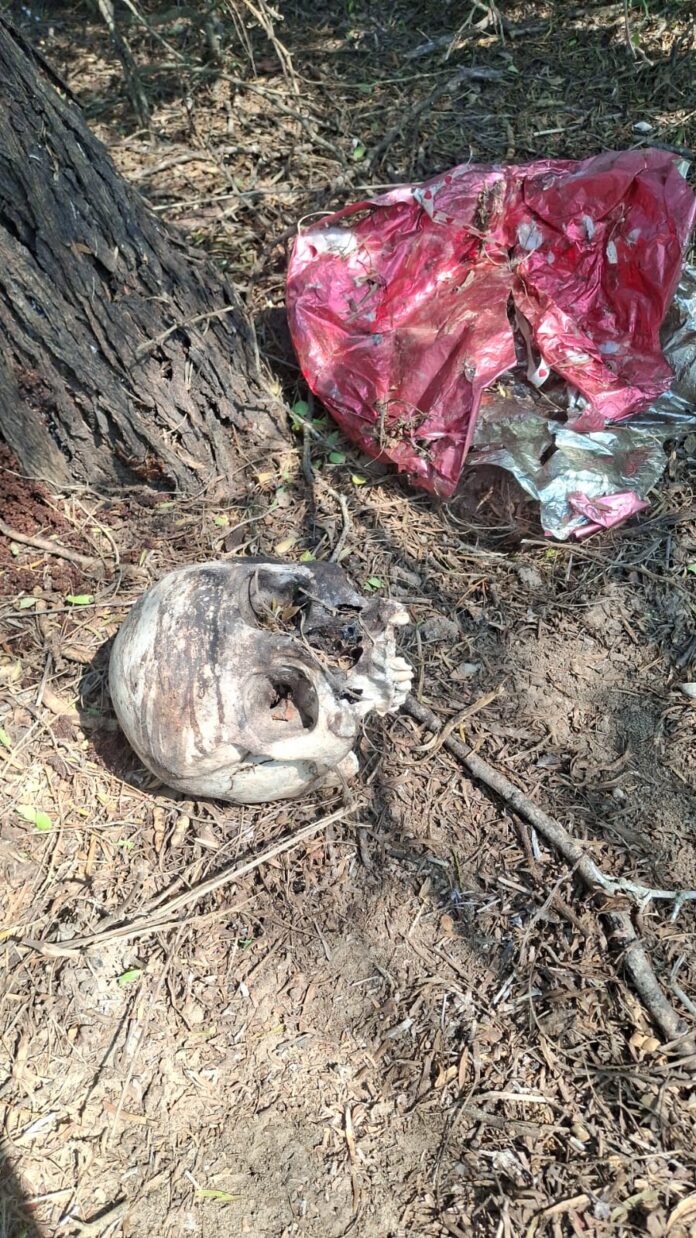 Durante su búsqueda, el grupo encontró restos humanos tanto en la superficie como en el interior de dos fosas, recuperando, entre otros huesos, cuatro cráneos.