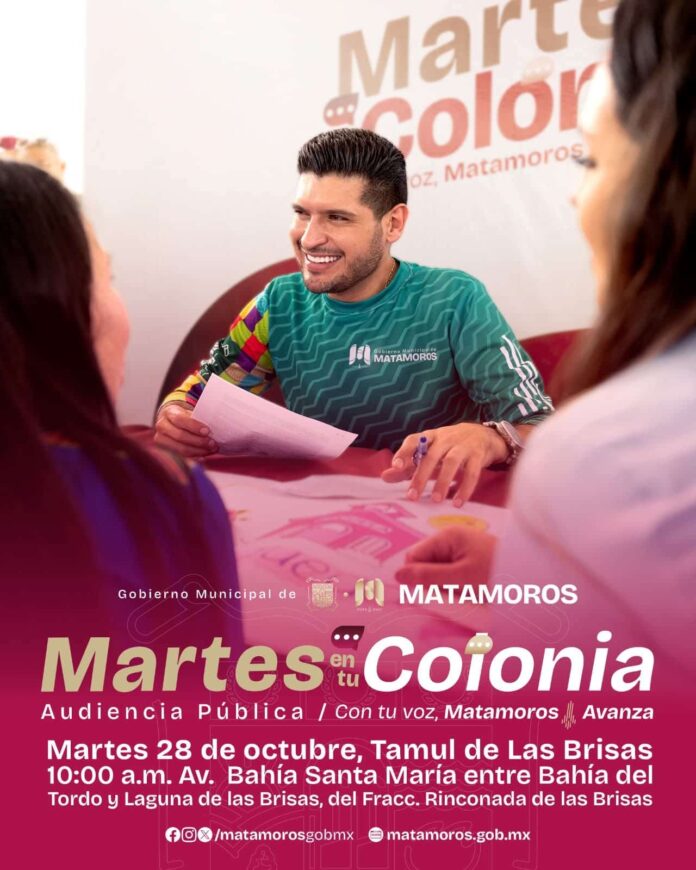 Este martes, el programa “Martes en tu Colonia” llegará al Tamul de Las Brisas, donde a partir de las 10:00 de la mañana los vecinos podrán acercarse para compartir sus planteamientos, inquietudes y propuestas directamente con las autoridades municipales.