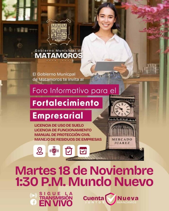 Con el propósito de impulsar el crecimiento económico local y brindar herramientas de desarrollo a emprendedores y empresarios, el Gobierno Municipal anunció la realización del Foro Informativo para el Fortalecimiento Empresarial, programado para el próximo martes 18 de noviembre a la 1:30 de la tarde.
