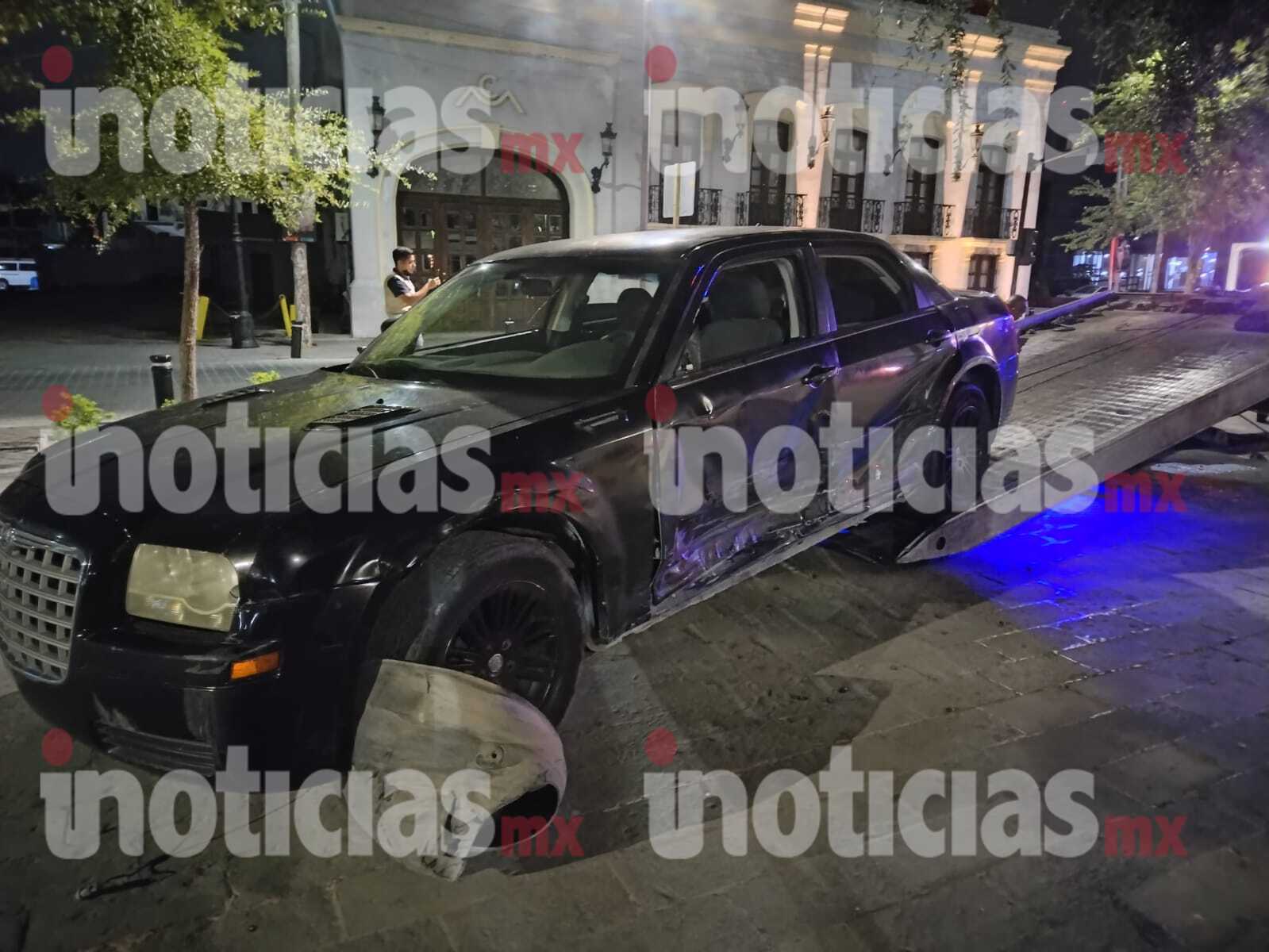El conductor responsable fue identificado como Luis Amador, y circulaba de poniente a oriente por la calle Morelos pero al pasarse en rojo provoca ser chocado por un coche Honda verde y termina perdiendo el control hasta meterse a la plaza principal.