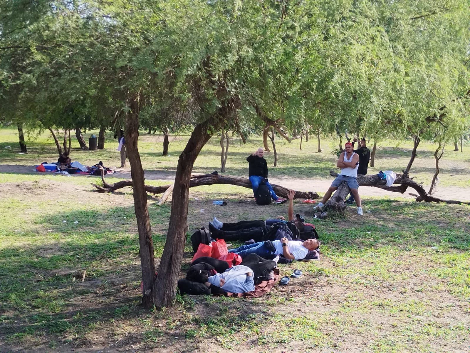 En un problema de salud grave también se esta convirtiendo la gran cantidad de migrantes que están pernotando cerca del Puente Nuevo Internacional, dado a que están haciendo de sus necesidades fisiológicas en el área verde del Parque Lineal, en donde están instalando sus casas de campaña y juegan los niños que los acompañan en este sueño de llegar a Estados Unidos.