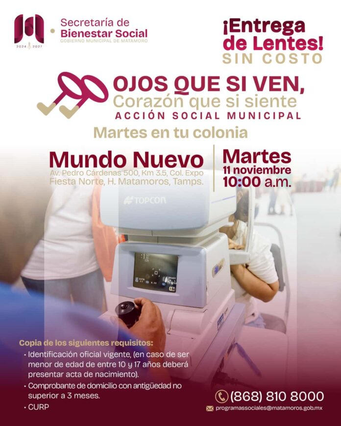 Este apoyo está diseñado especialmente para quienes más lo necesitan, promoviendo la inclusión y el acceso a la salud visual. Con esta iniciativa, el Gobierno Municipal, que encabeza el alcalde Beto Granados, reafirma su compromiso con el bienestar integral de las familias matamorenses.