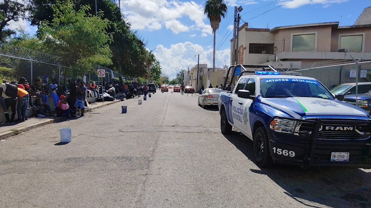Se pudo evitar la introducción de los haitianos al área prohibida donde se encuentra el campamento migrante, pero son cientos de extranjeros que se encuentran en las calles aledañas al cruce fronterizo y del Instituto Nacional de Migración, ya que la Asociación Civil Ayudándoles a Triunfar se encuentra a espalda de estos dos.