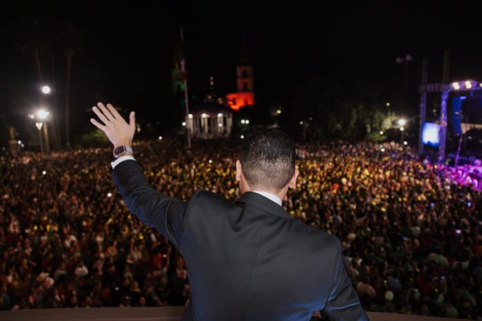 La noche del 15 de septiembre, el Presidente Municipal, Beto Granados, encabezó la ceremonia del Grito de Independencia en la Plaza Principal de Matamoros, ante más de diez mil personas, enmarcada por un ambiente de unidad y orgullo nacional.