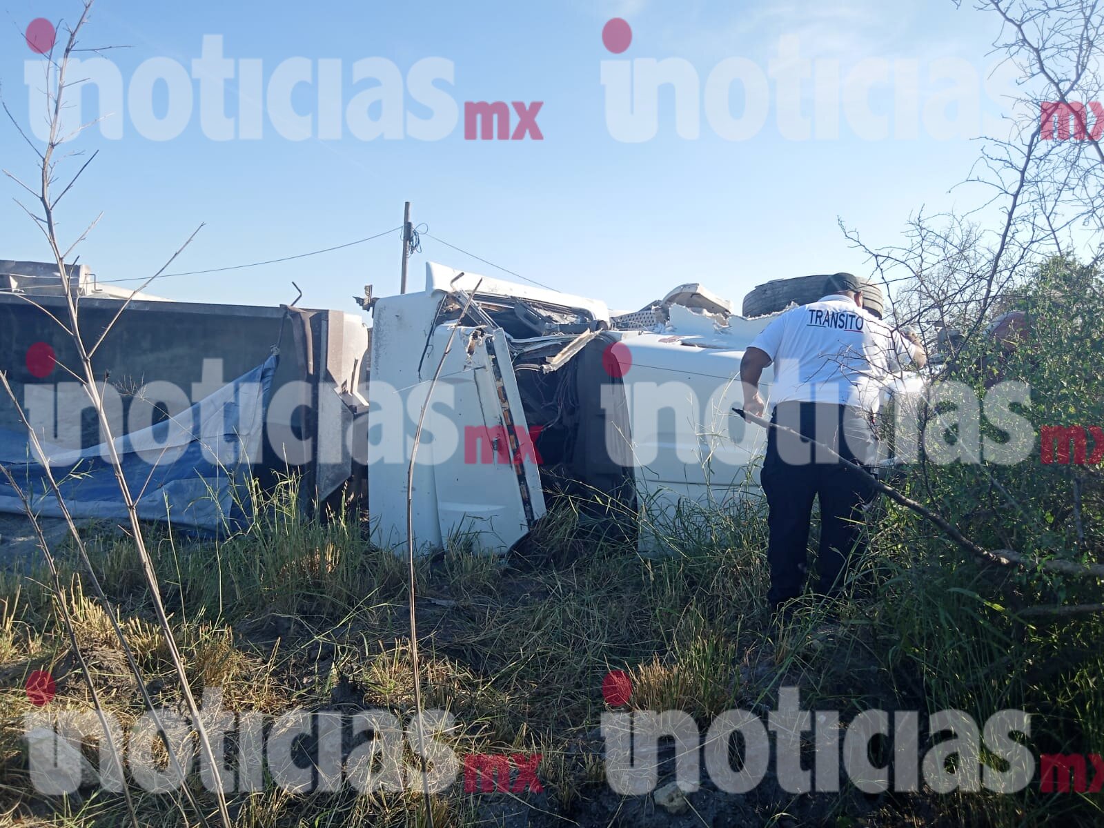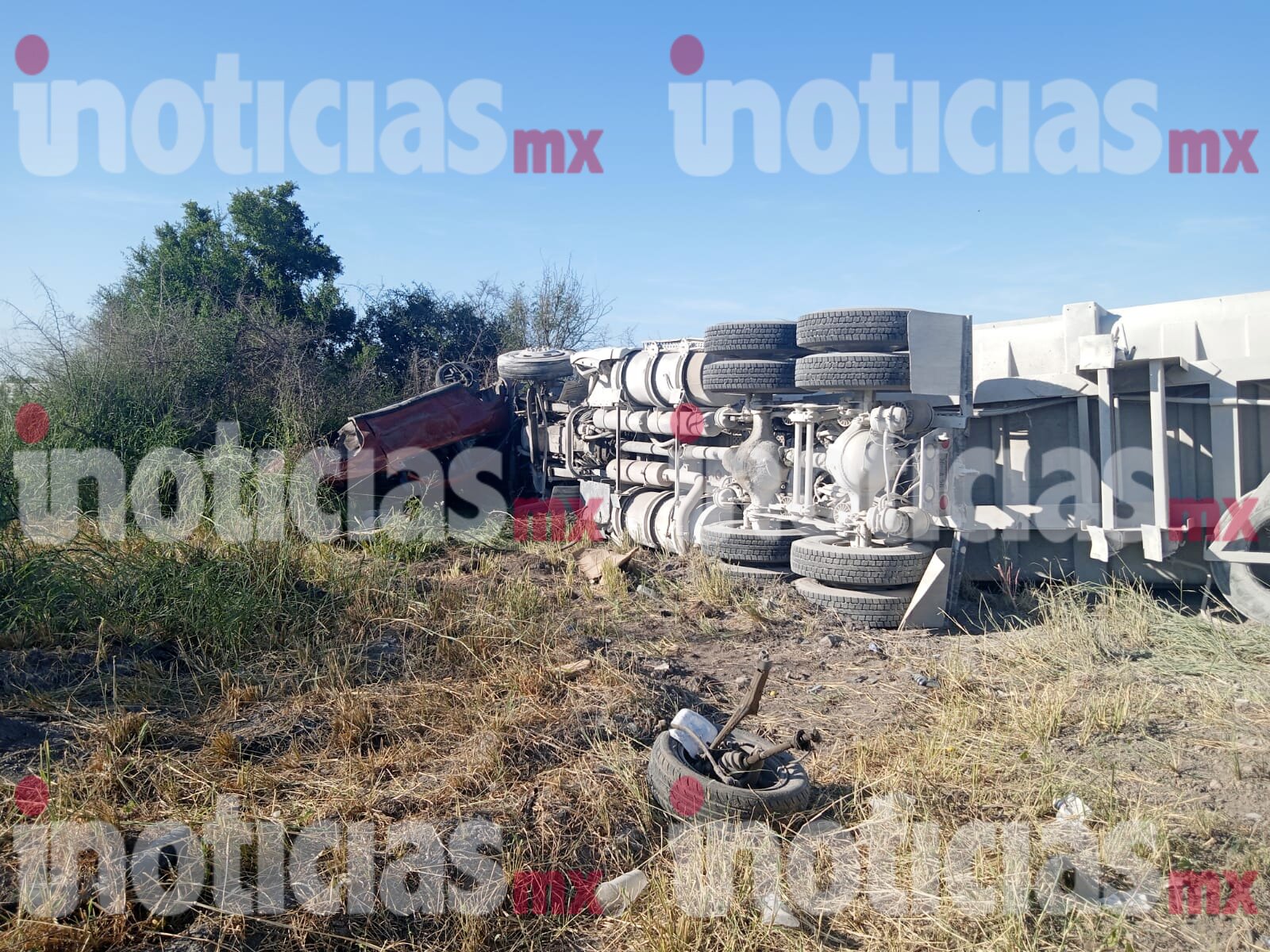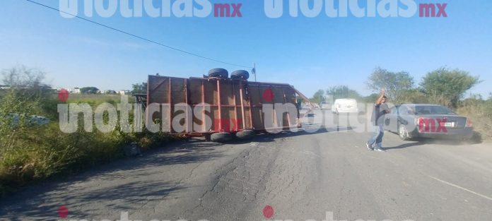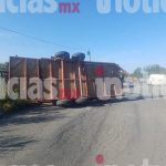 El trailer chocó con otra unidad por lo que el peso del material de construcción que llevaba ocasionó que se volcara resultando dos personas lesionadas en el percance vial.