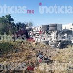 Trailer se vuelca en el libramiento Emilio POrtes Gil